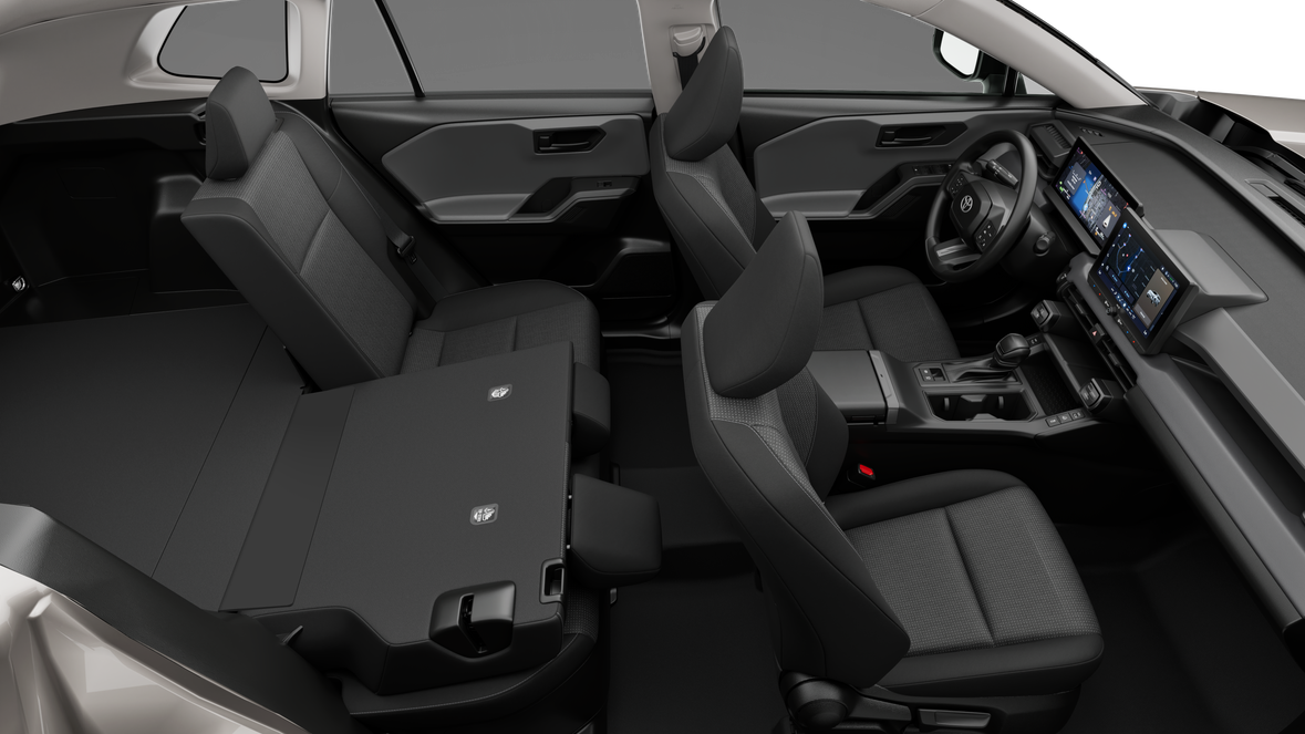 • 60/40 split reclining fold-flat rear seat with center armrest and cup holders