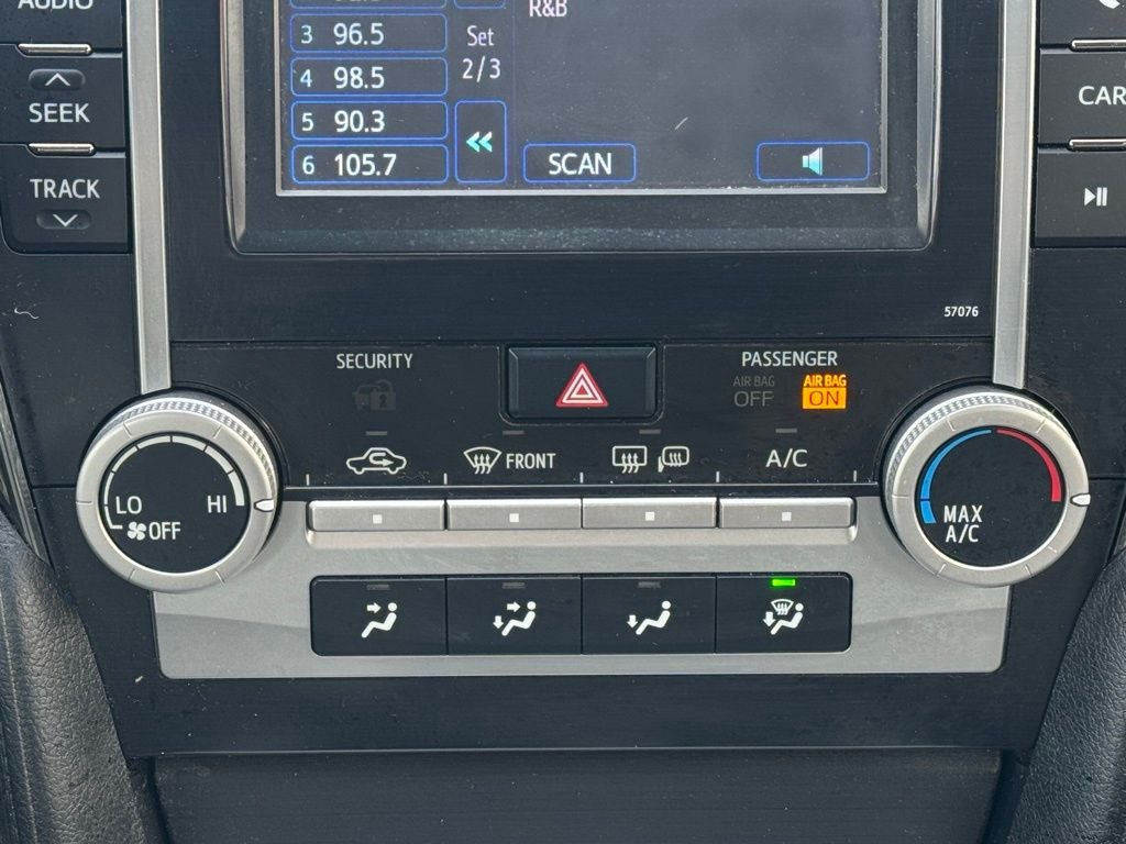 2013 Super White Toyota Camry SE FWD This Toyota Camry has many features and is well equipped including. Leather Seats, Bluetooth® Hands-Free, ABS brakes, Alloy wheels, Electronic Stability Control, Heated door mirrors, Illuminated entry, Low tire pressure warning, Remote keyless entry, Traction control.