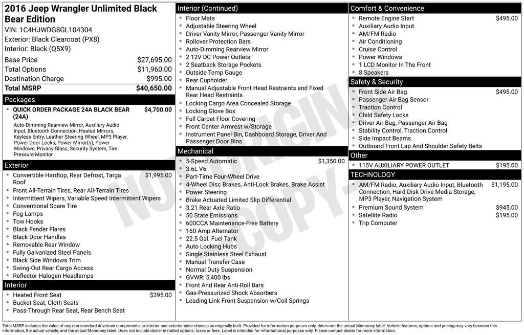 2016 Jeep Wrangler Black Bear