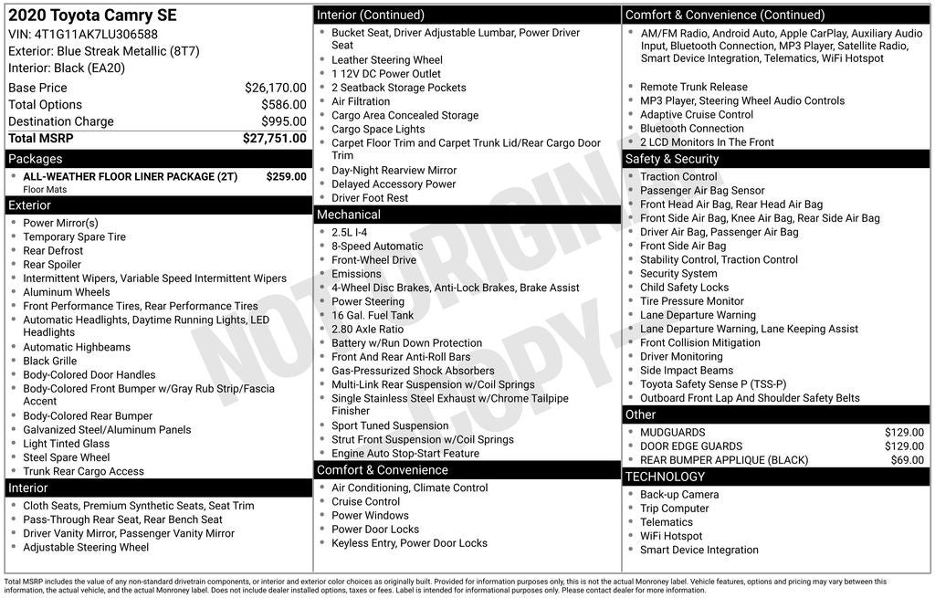 Thank you for taking the time to look at this fantastic 2020 Toyota Camry. As you do your comparison shopping, you will see Ganley Automotive offers some of the best values in the market. We will provide you a Carfax, Comprehensive Vehicle Inspection, and how we arrived at the price. We are located at 1395 E Market street in Akron, OH 44305. Please call 330-733-7511 to speak with a salesman about this vehicle. Out of town buyers free pick-up at the airport. We can help arrange delivery right to your front door too!