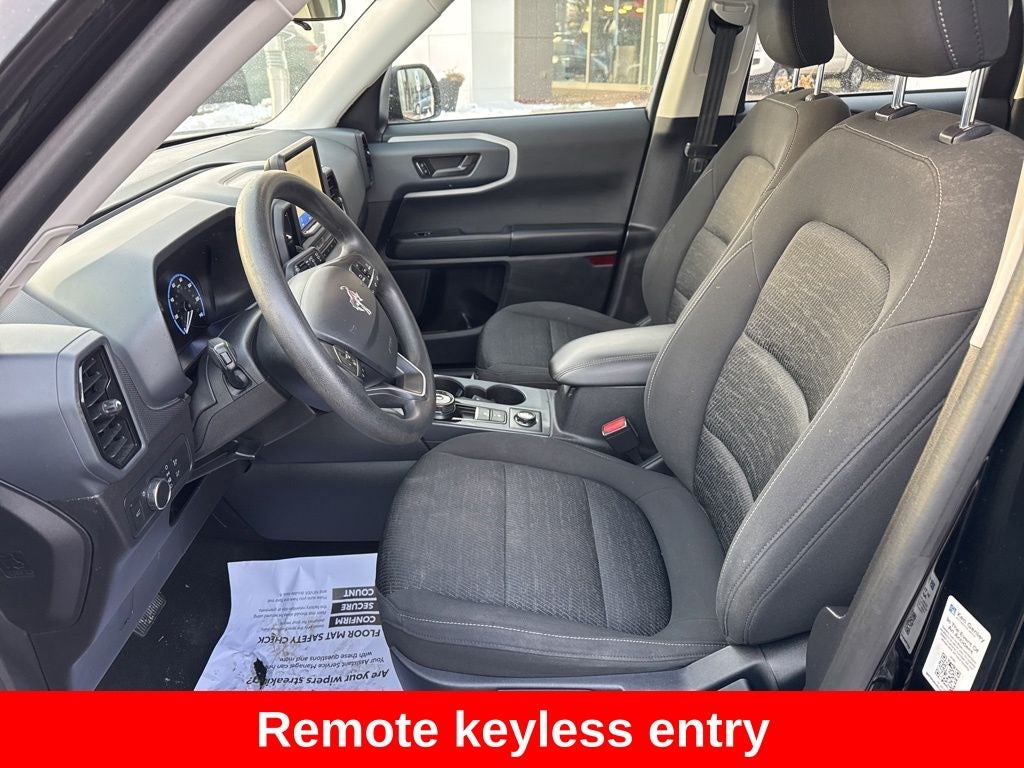 2021 Shadow Black Ford Bronco Sport 4WD This Ford Bronco Sport has many features and is well equipped including. Backup Camera, Touchscreen Controls, Automatic Headlights, Apple CarPlay, Android Auto, Bluetooth® Hands-Free, 6 Speakers, Remote keyless entry, Split folding rear seat, Wheels: 17 Sparkle Silver.