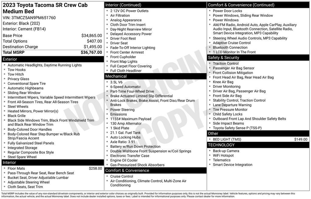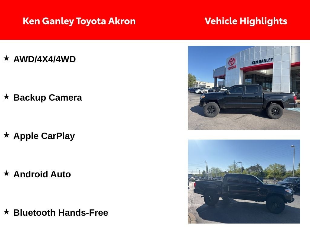 Thank you for taking the time to look at this charming-looking 2023 Toyota Tacoma. As you do your comparison shopping, you will see Ganley Automotive offers some of the best values in the market. We will provide you a Carfax, Comprehensive Vehicle Inspection, and how we arrived at the price. We are located at 1395 E Market street in Akron, OH 44305. Please call 330-733-7511 to speak with a salesman about this vehicle. Out of town buyers free pick-up at the airport. We can help arrange delivery right to your front door too!