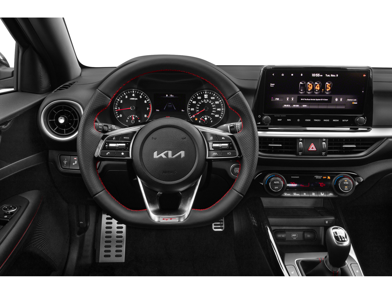 - Radio: 10.25" Display Audio -inc: 6 speakers, 10.25" touch screen, navigation, Kia Connect, HD radio, Apple CarPlay, Android Auto, Bluetooth® hands-free and USB input