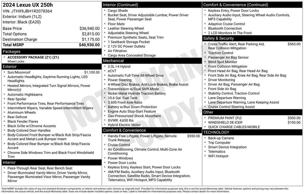 - Vehicle Name: Lexus UX