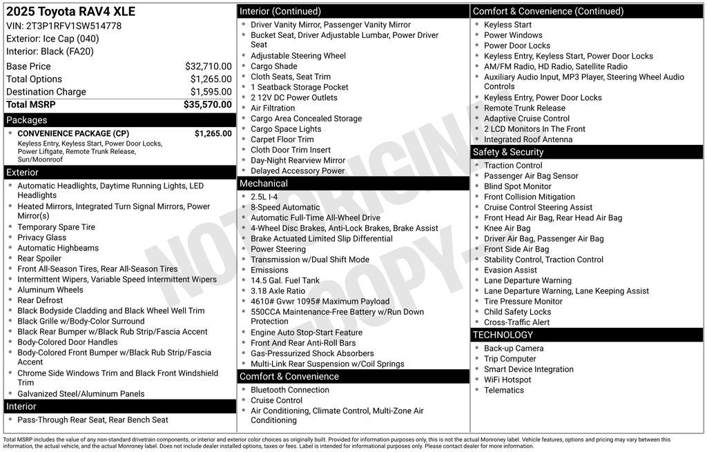 Thank you for taking the time to look at this terrific 2025 Toyota RAV4. As you do your comparison shopping, you will see Ganley Automotive offers some of the best values in the market. We will provide you a Carfax, Comprehensive Vehicle Inspection, and how we arrived at the price. We are located at 1395 E Market street in Akron, OH 44305. Please call 330-733-7511 to speak with a salesman about this vehicle. Out of town buyers free pick-up at the airport. We can help arrange delivery right to your front door too!