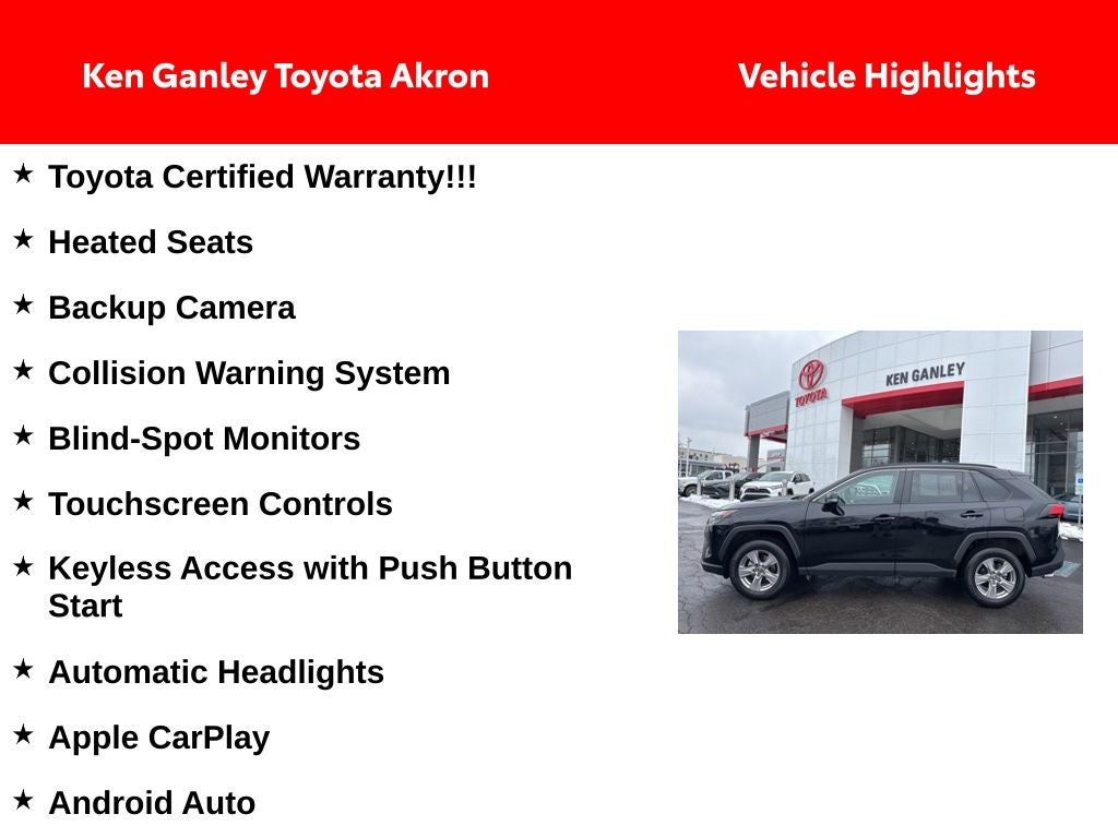 Thank you for taking the time to look at this beautiful-looking 2025 Toyota RAV4. As you do your comparison shopping, you will see Ganley Automotive offers some of the best values in the market. We will provide you a Carfax, Comprehensive Vehicle Inspection, and how we arrived at the price. We are located at 1395 E Market street in Akron, OH 44305. Please call 330-733-7511 to speak with a salesman about this vehicle. Out of town buyers free pick-up at the airport. We can help arrange delivery right to your front door too!
